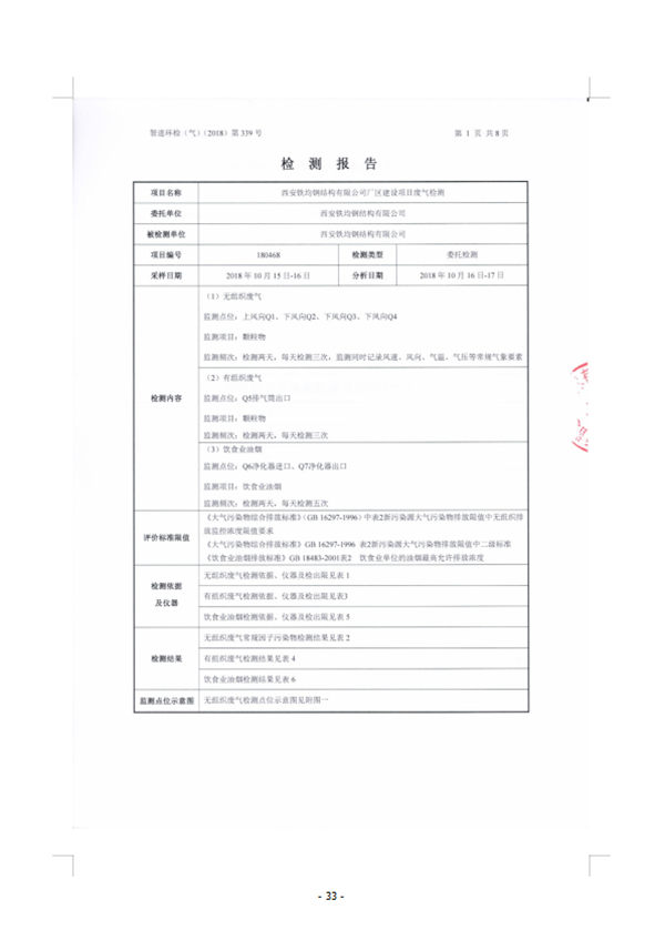 西安鐵均鋼構(gòu)廠區(qū)建設(shè)-驗(yàn)收監(jiān)測報(bào)告(廢水、廢氣)